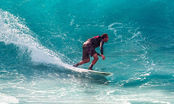 yfsurf动力冲浪板属于新型涉及运动器材领域,是一种采用高功重比的二冲程发动机作为动力,可以在海面或是在平静水面上行驶的一件运动装备。包括船体组件、动力装置、操纵手柄、主尾翼,其特征是所述的船体组件为扁长椭圆形流线式中空结构,船体组件上面中部位置设有本体大盖,动力装置设置在船体内中空部位,船体组件的头部设有导流罩,操纵手柄通过拉索管联接在导流罩上,船体组件下面的尾部设有主尾翼,主尾翼的前端两边设有左侧翼、右侧翼。动力装置采用汽油燃料,操作手柄上设有控制开关,冲浪时操作性、娱乐性强。